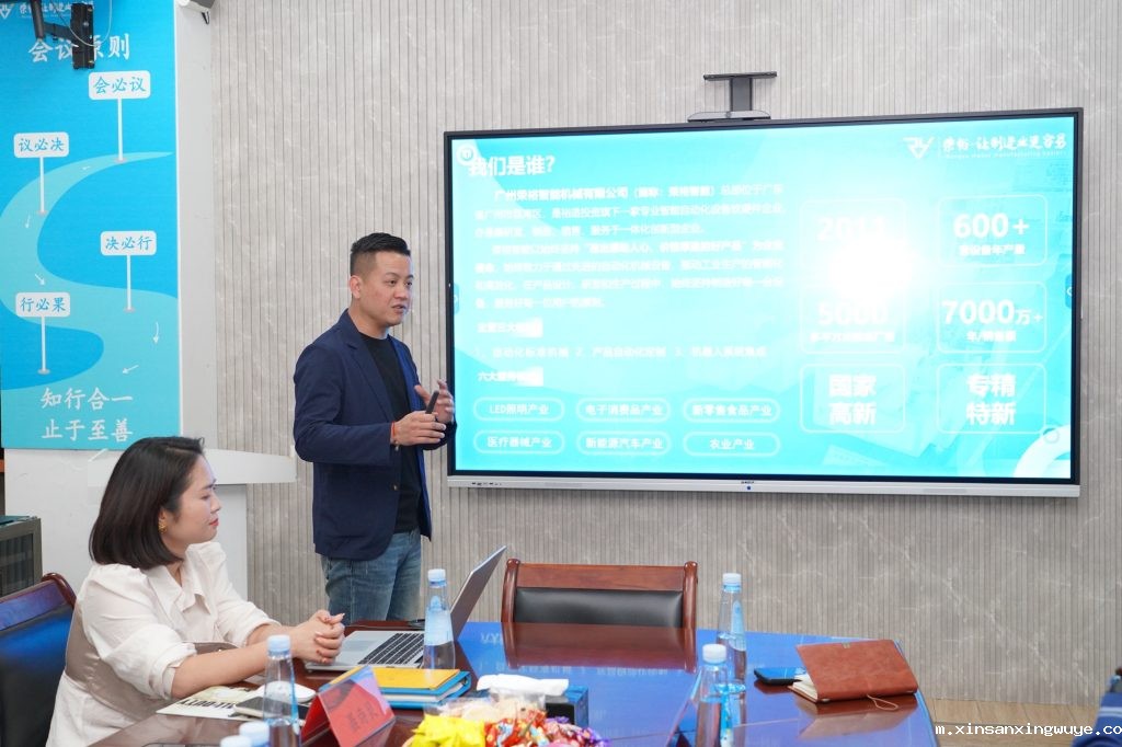 ▲ 星空综合官网中国秘书长敖伟诺与荣裕智能团队现场交流