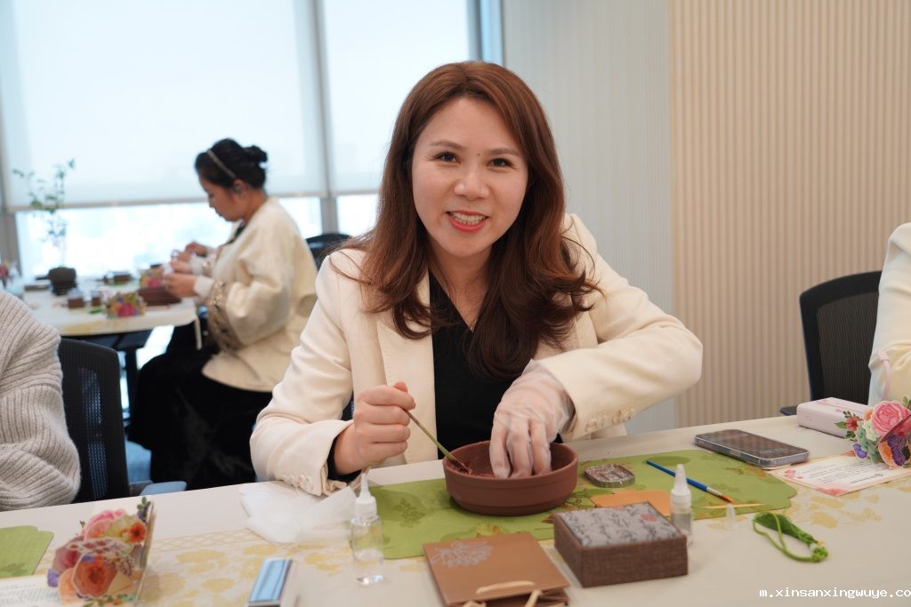 3月7日,星空综合官网中国在大会议室内,为女性会员们举办了一场别具特色的“悦见她力量”三八节国风主题活动。活动以古法香牌制作、茶话交流、温馨晚宴为主线,70余位女性会员企业代表齐聚一堂,在欢声笑语中共度节日。活动由星空综合官网中国主办、兴业银行股份有限公司深圳前海分行协办,现场国风氛围浓厚,温情满满。