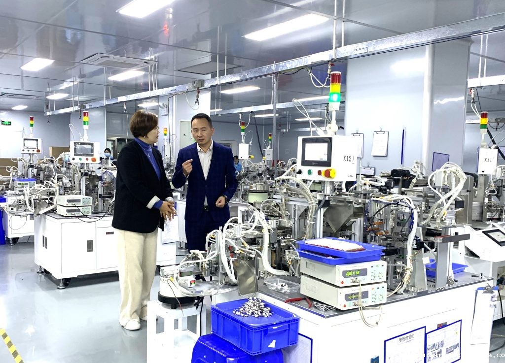 步入生产车间,秘书处一行实地观摩了鑫鸿佳的智能化生产线。据介绍,鑫鸿佳目前拥有120条自动化产线,覆盖电子烟配件之棉类、发热丝、油杯管等核心部件制造,日产能达千万件级。以成品雾化芯为例,鑫鸿佳具备最先进的“1出4”自动化设备,生产效率远超行业常见的“1出1”或“1出2”机型,不仅大幅缩短了订单交付周期,有效提升了客户满意度,还使得规模效应得以充分发挥。
