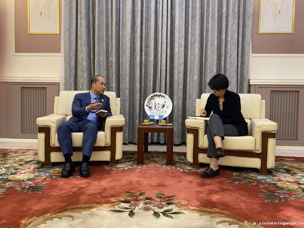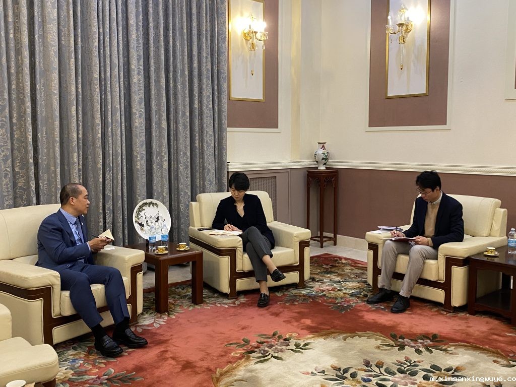 ▲ 敖伟诺秘书长向徐宇虹参赞汇报工作
