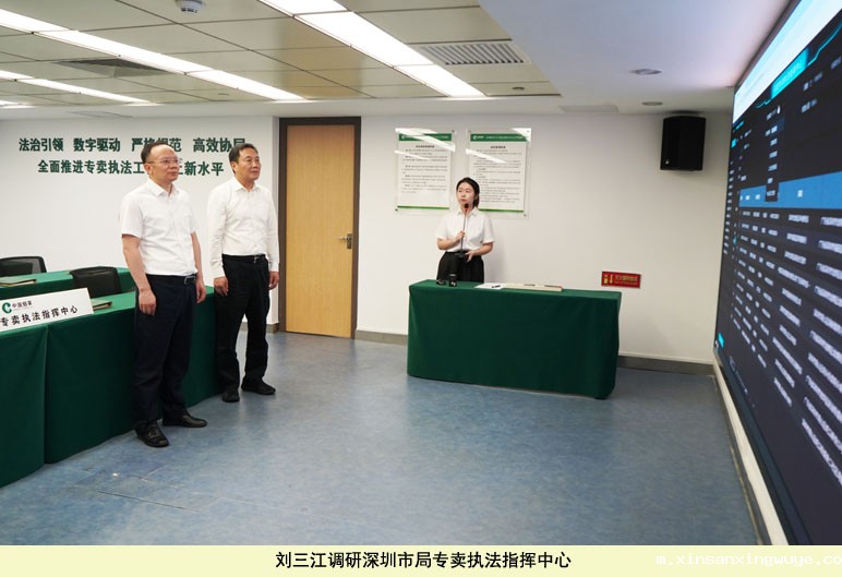 刘三江对广东、深圳烟草各项工作取得的成绩给予肯定,强调要坚持以习近平新时代中国特色社会主义思想为指导,全面加强党的建设,持之以恒正风肃纪反腐,推动全面从严治党向纵深发展。深入贯彻落实全国烟草工作会议精神,以超常规手段打击涉烟违法行为,坚决遏制制假走私反弹扩散,切实保障国家财税收入和经济安全;把握好上与下、内与外、点与面的关系,积极争取各级党委政府支持,推动多部门联动机制落地,主动担当作为,层层传导压力,既要敢于执法又要规范执法,既要紧盯大案要案又要注重面上拓展,推动打假打私实现新突破;进一步加强能力建设,不断深化技术创新、制度创新,探索应用新技术新工具,完善相关工作机制,不断提升专卖监管效能;进一步细化相关制度,厘清职责分工,完善考核机制,从严管控,全面监管,持续巩固电子烟产业法治化规范化治理成果。
